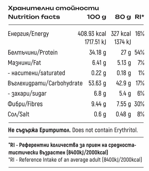 Висококачественият протеин, фино смлените овесени ядки и богатото съдържание на фибри превръщат тази закуска в надежден избор за поддържане на стабилна енергия, концентрация и ситост за 3–5 часа.